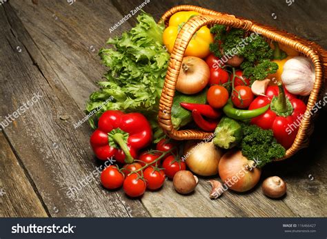 Organic Food Background Vegetables In The Basket Stock ...